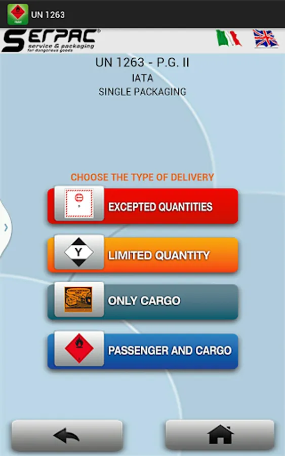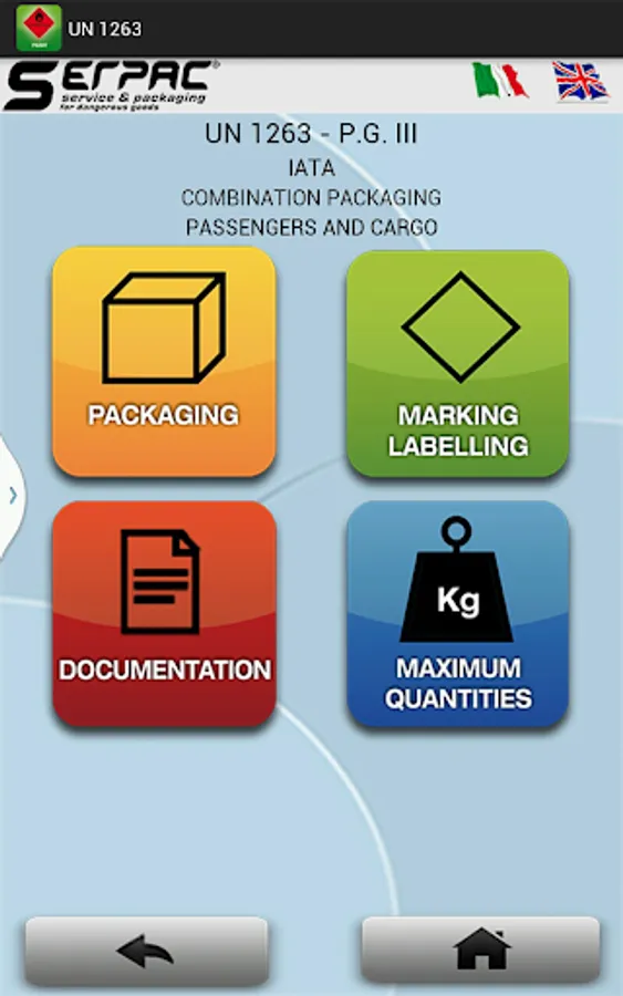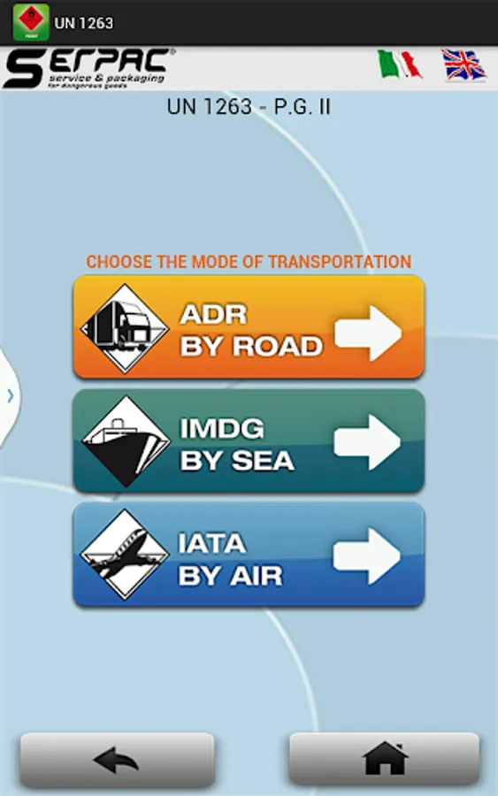 UN 1263 is a mobile app that, through guided choices, will allow you to prepare your shipment of UN1263 – PAINT (Packing Group I,II,III) in accordance with the requirements of the ADR Regulations (by road), IMDG (by sea) and ICAO/IATA Regulations (by air).It can be used everywhere and anytime.
