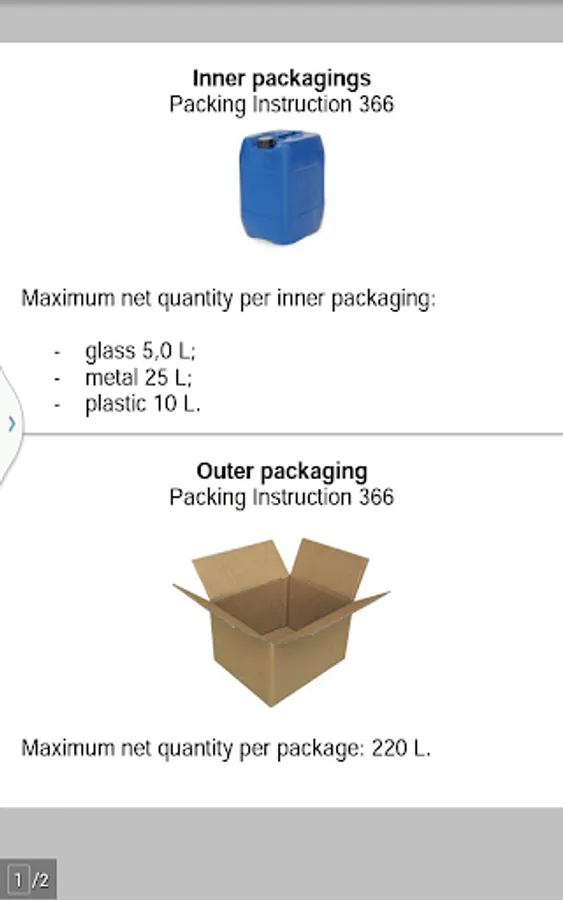 This app provides a reliable and complete guide on the procedures for packing, labelling and marking the package, fill in the required documents and define the maximum quantity permitted by the Regulation of the mode of transport you want to use.