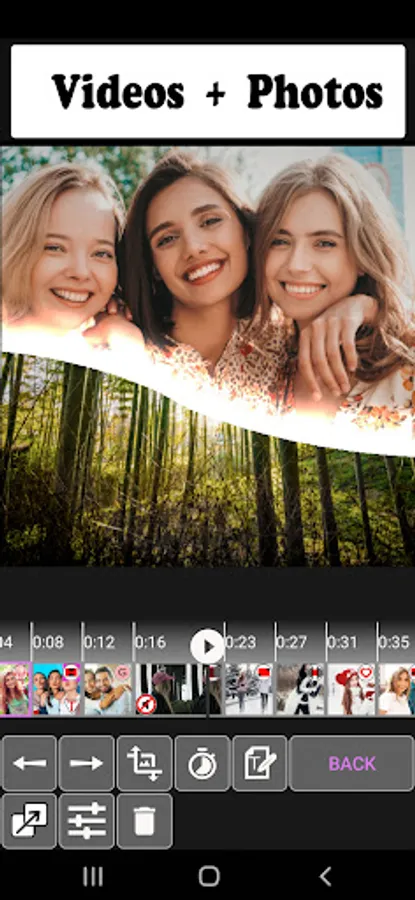 The app will help you easily create a video from photos, video clips or from both photos and videos at the same time. Simply select the photos or videos you need. Select music from your phone or tablet. Your project is ready to save!