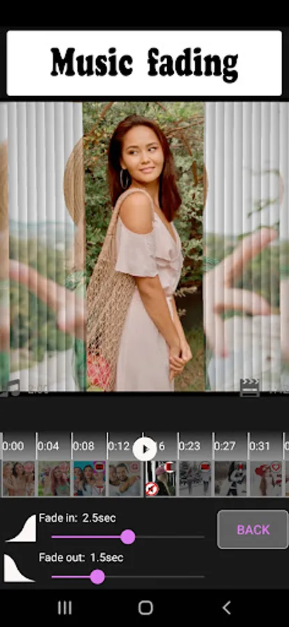 You can add different video fragments from your phone (sometimes these are short videos from YouTube, TikTok, etc.). These videos can have their own soundtrack or background music. The "Photo Video Maker & Music" app disables this background music from video elements by default. But you can turn it on in the settings of the desired video and adjust the volume.