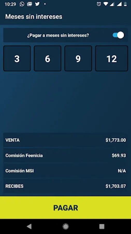 Feenicia is the point of sale terminal that allows you to make payments with bank cards and electronic vouchers all from the same application with a fixed transaction of 3.4% + I.V.A.
