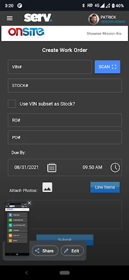 SERV. VM Vendors is a Vendor Management Application for automotive dealerships. A software agreement/contract with SERV Automotive and Onsite Dealer Solutions is required to use the app. You can contact us to get SERV enabled at your dealership.