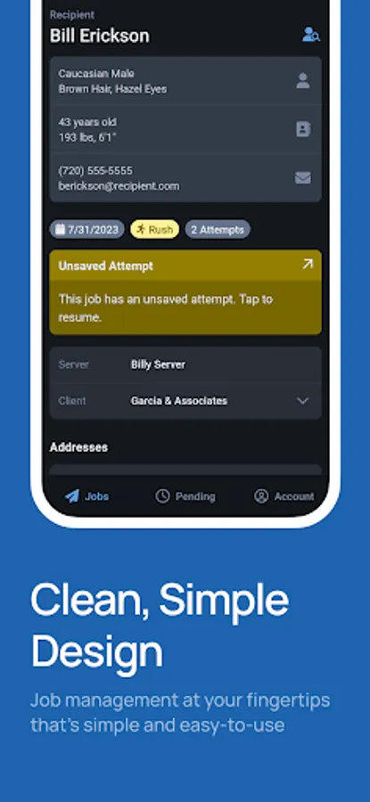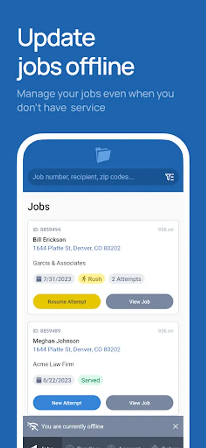 - Accept and decline jobs from collaborating law firms and other process servers