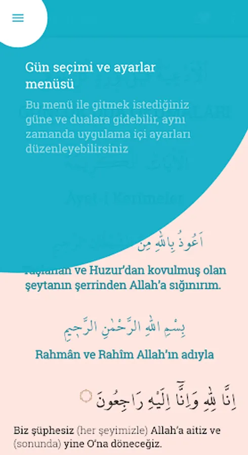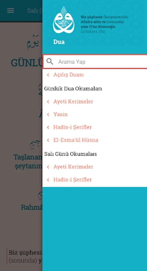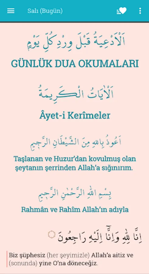 Dua application consists of the Quran to Muhammad with his prayer some surahs and verses. Prophet Muhammad as a source spilled retrieving text from holy prayer language to pass on at least one of the Kutub-i Sitte is based. Each day will read the following section to read a selection is made by days starting from Friday. alarak- information -Calendar day after the prayer to be read out when the application is opened daily adds that the selection of the prayer of the day.