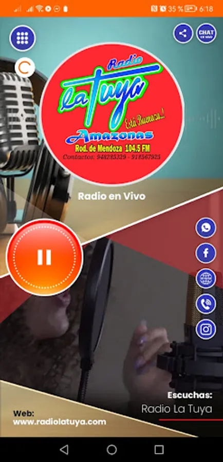 Radio La Tuya, this good thing, is a radio station that broadcasts on 104.5 FM, in the Province of Rodriguez de Mendoza - Amazonas.