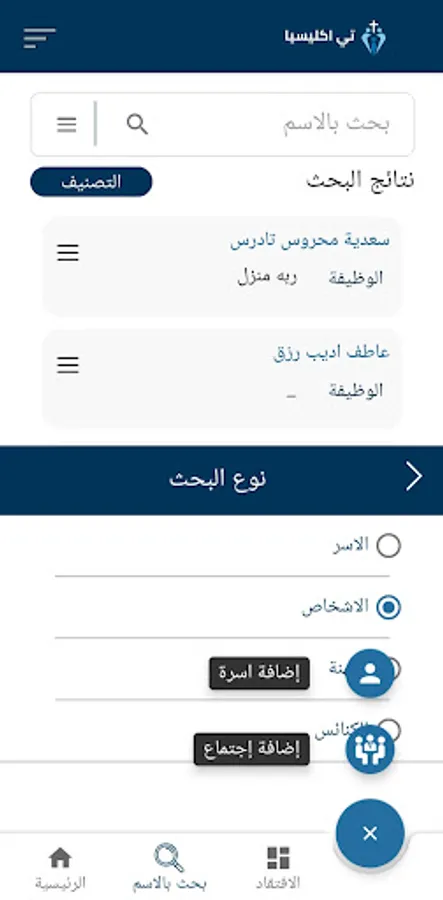 T Ecclesia application for church services, follow-up of families, visits, meetings and church activities