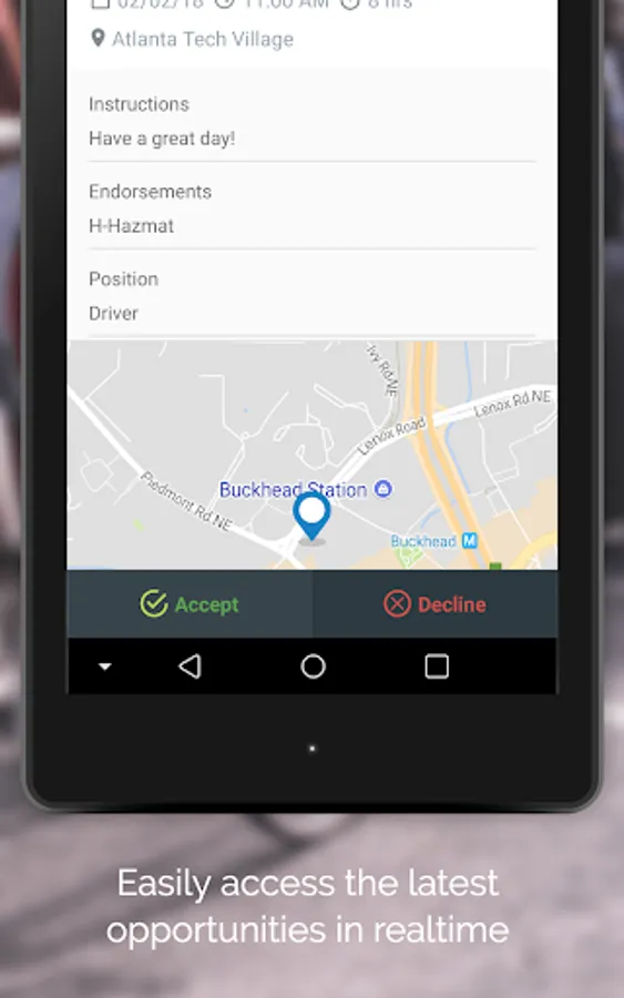 Get work offers in your work area that meets your needs. See pay rate information. Accept in real time. Manage your shifts including clock in and out. Review your employer when complete.