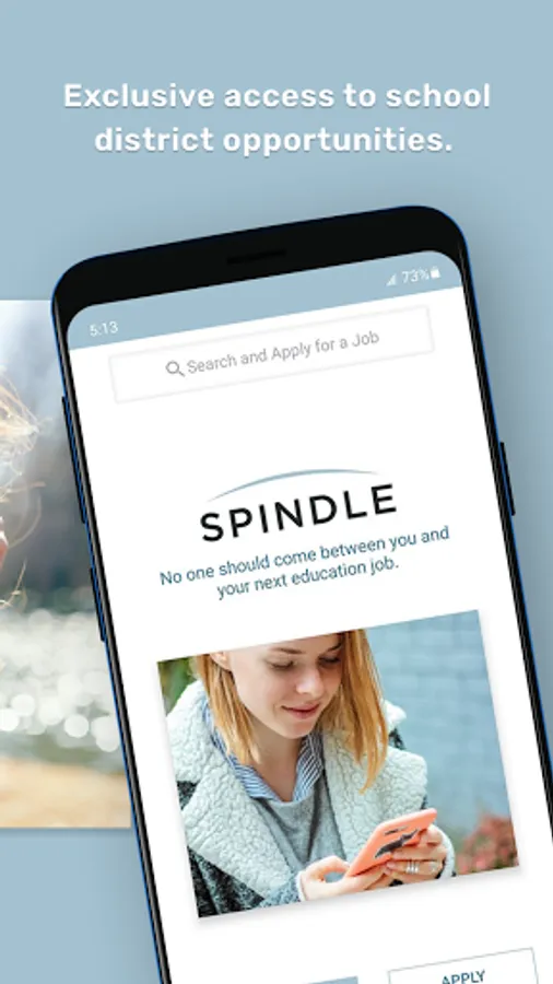With Spindle, nothing comes between you and great education jobs. There’s no middleperson. No recruiters. No pressure. And no hassle. It’s simply one of the very best job search apps available. Download Spindle today and you’re instantly empowered to find and apply for amazing education jobs—wherever you are, or wherever you want to be.