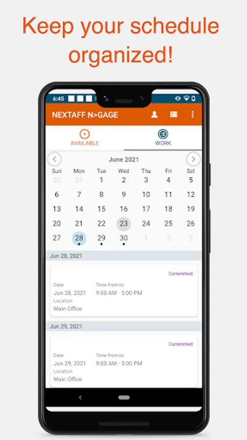 The NEXTAFF N>GAGE app allows Field Employees to: