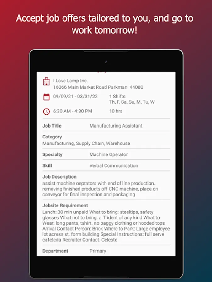 OpEn connects you with immediate jobs available in your area. We’ll match you with open positions that fit your skills and preferences, and with a few taps on your phone, you can apply, accept a job, and onboard—all from the comfort of your own home.