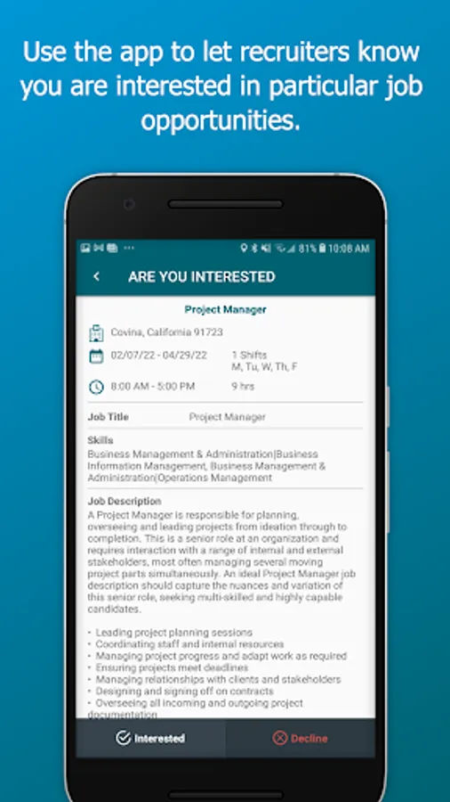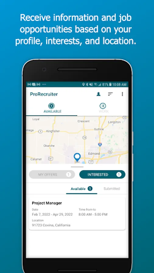 When you choose to build your career with us, the ProRecruiter app is your tool to stay engaged and connected with your local recruiter and provides access to a wide variety of features to help ensure we connect you with the right job opportunities that align with your career goals.