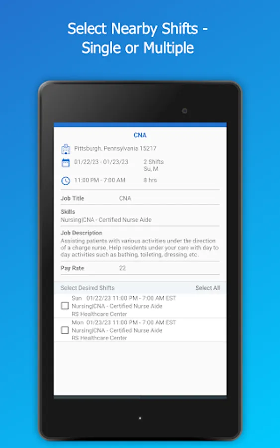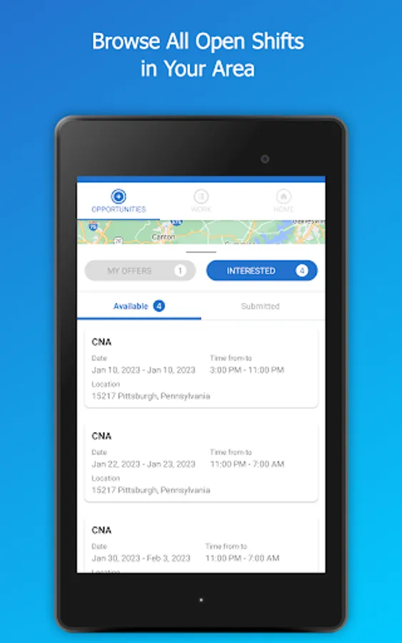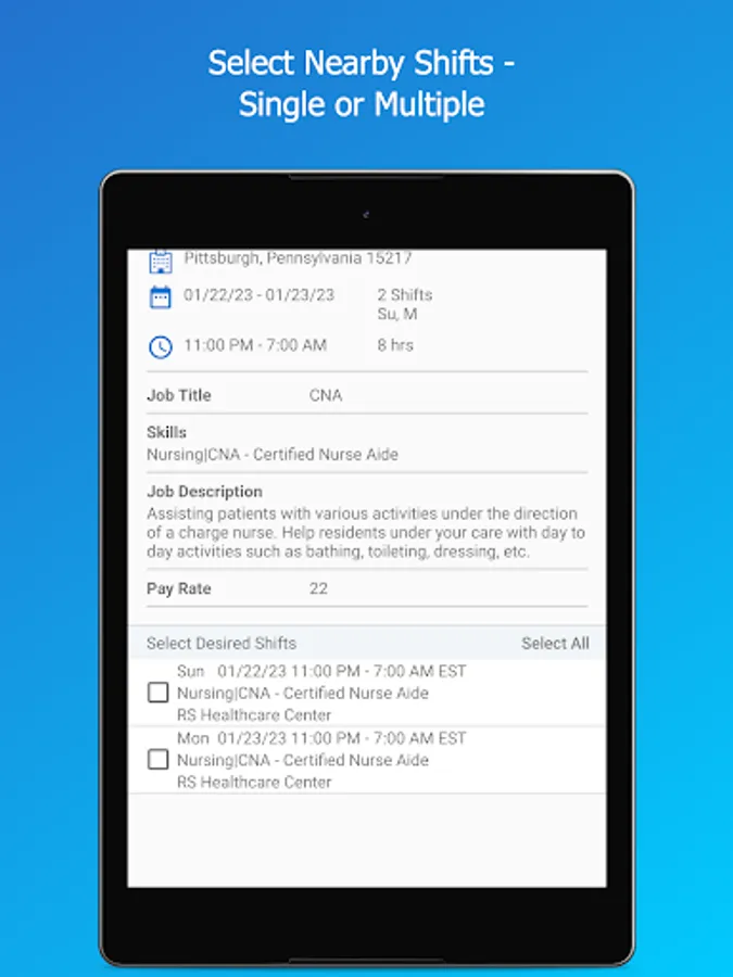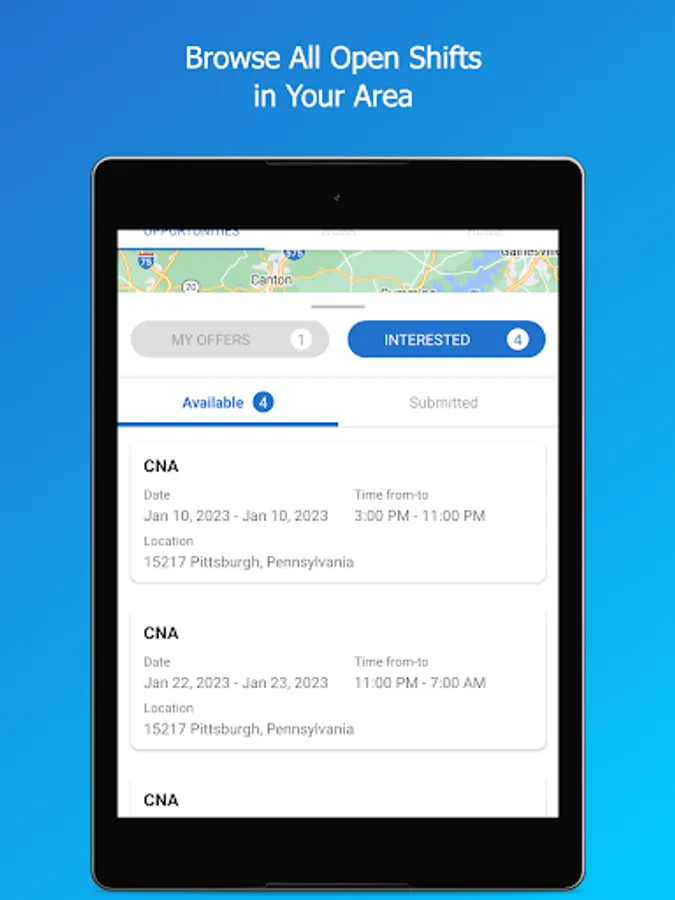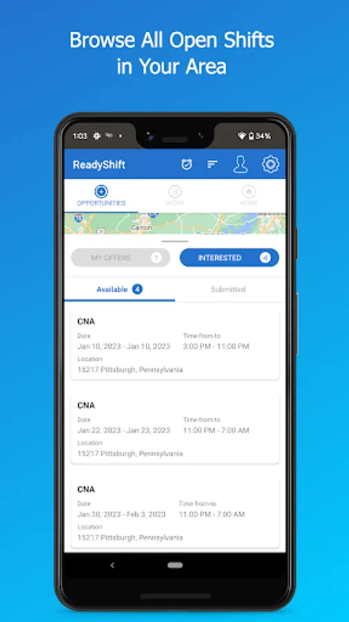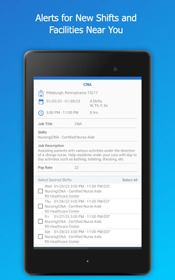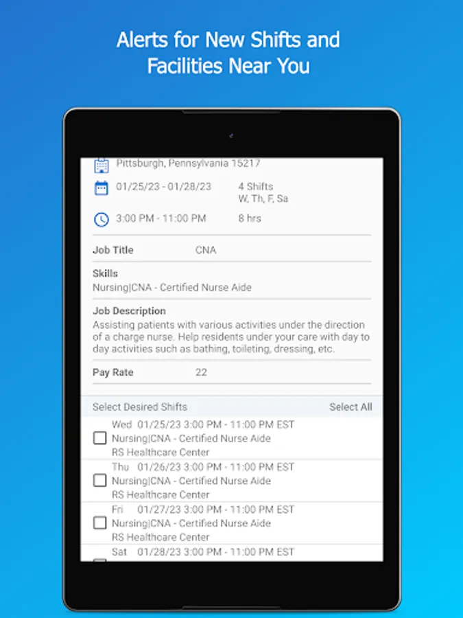 Get live updates from ReadyShift’s network of facilities in need of credentialed personnel.