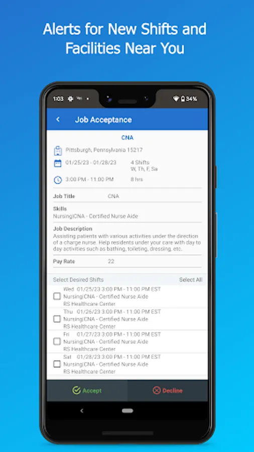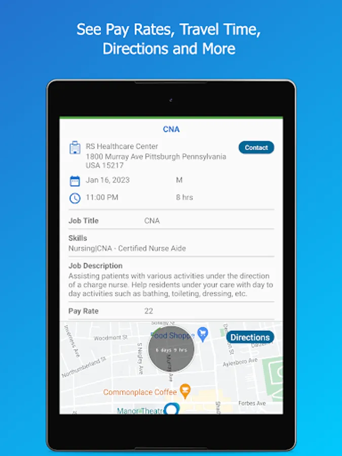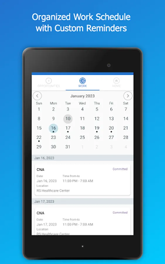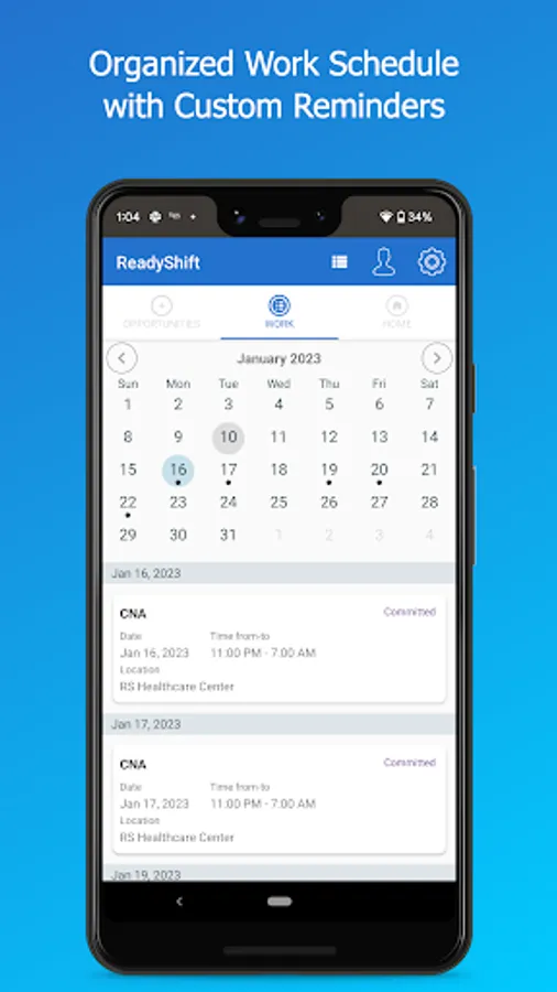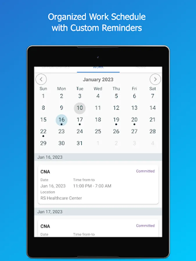 -View and manage your calendar of scheduled shifts with upcoming shift reminders
