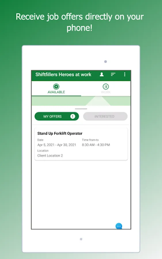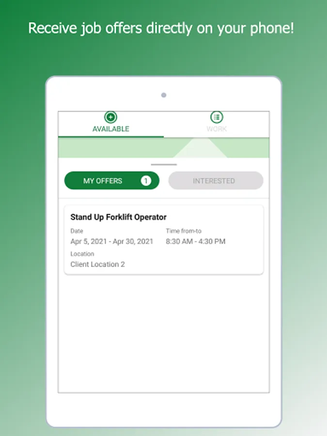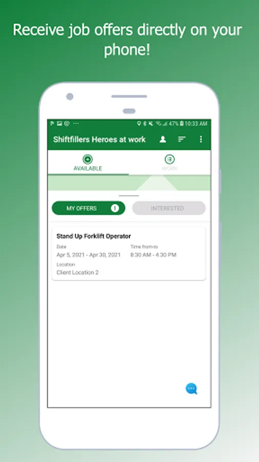 Once you're an eligible worker, you'll receive job offers on your phone. You can accept or decline them.