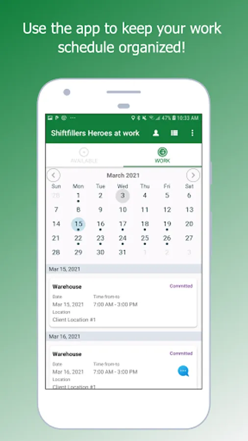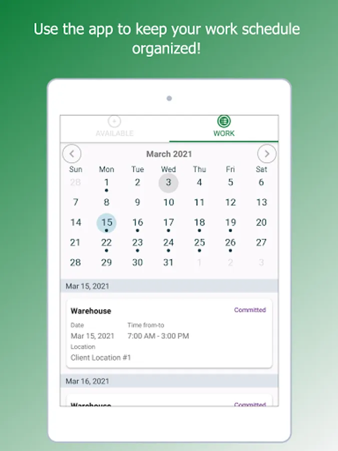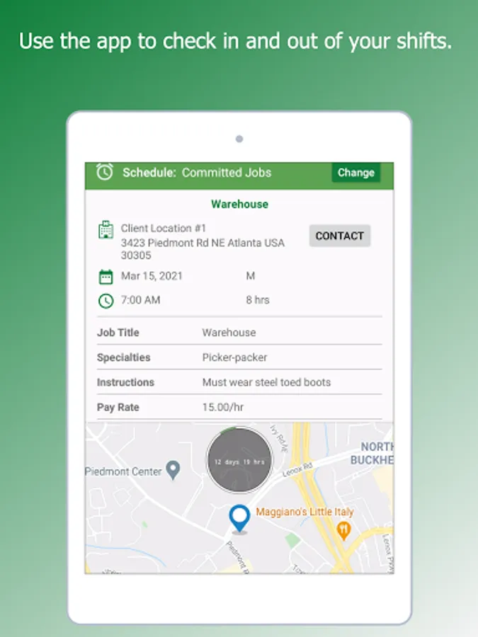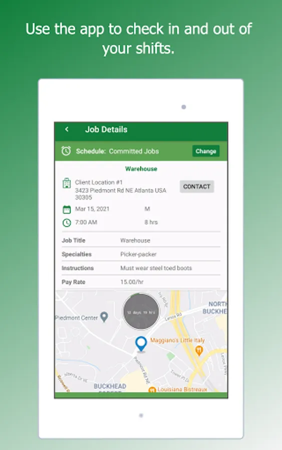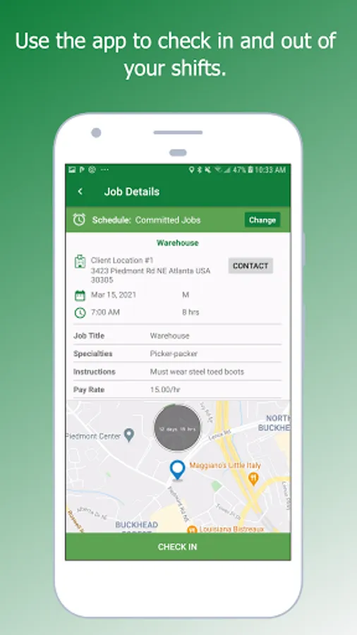 When you accept a job, all the instructions will be sent to your phone. You will check-in and check-out at work using our app and can get paid the same day!