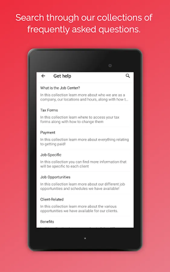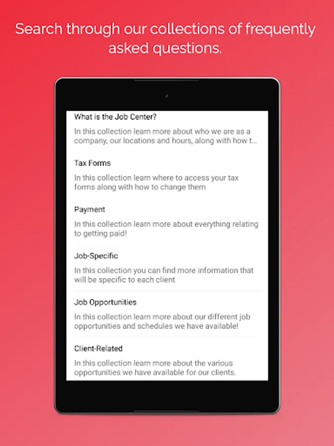 Welcome to the most convenient way to land your next job with The Job Center! Download our app to access all open positions, get alerted of new positions that fit your profile, get reminders about jobs you have accepted, and update your profile at any time.