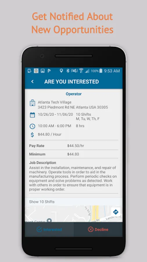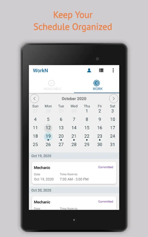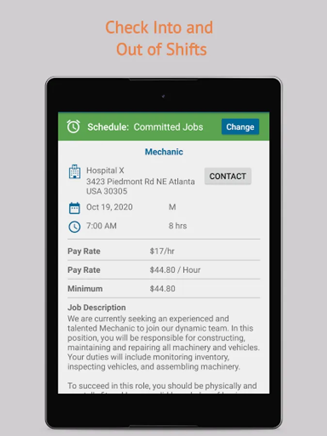 As a worker using WorkN you will see your shifts or assignments in real time, be able to check in and check out and review your employer and more. If you are a contractor you will also get access to new work once you are vetted into a market.