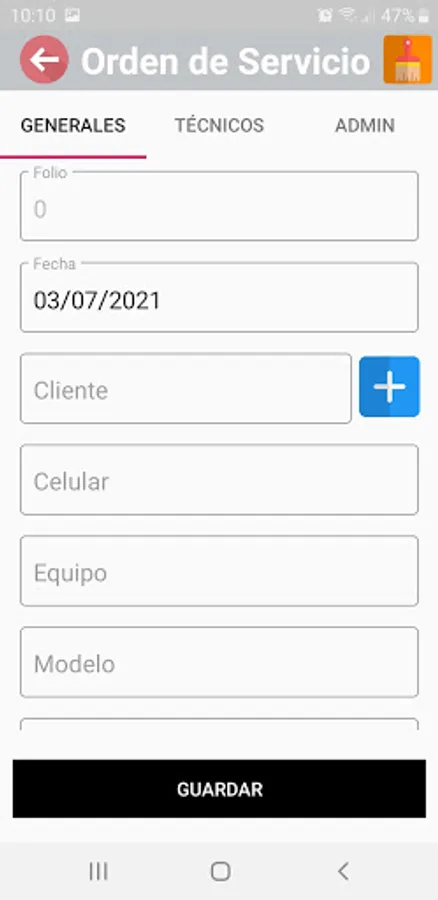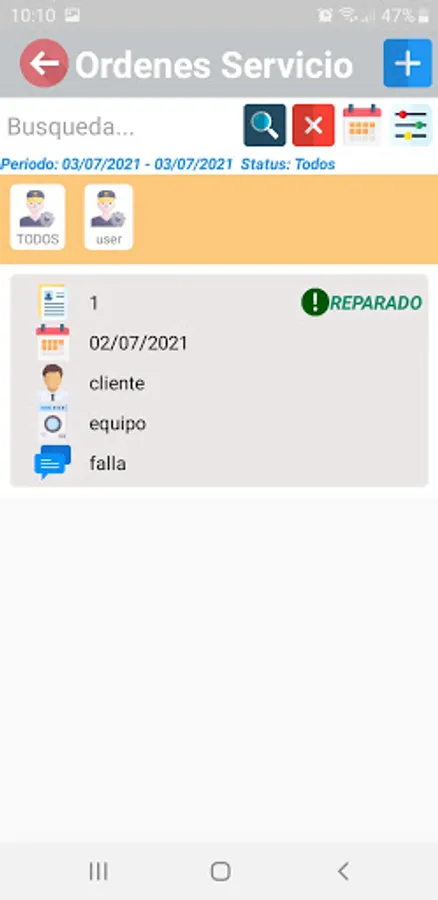Application that allows you to manage an electronic equipment repair shop, generates service orders to follow up on the process of receipt, review, repair and delivery of the repaired equipment to the customer.