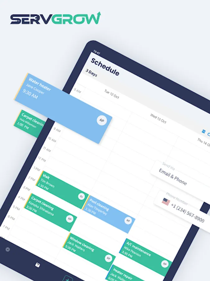 Servgrow app is designed for you and your team to run your day-to-day operations from anywhere. Easily streamline your process and watch as your organized team get jobs done faster.