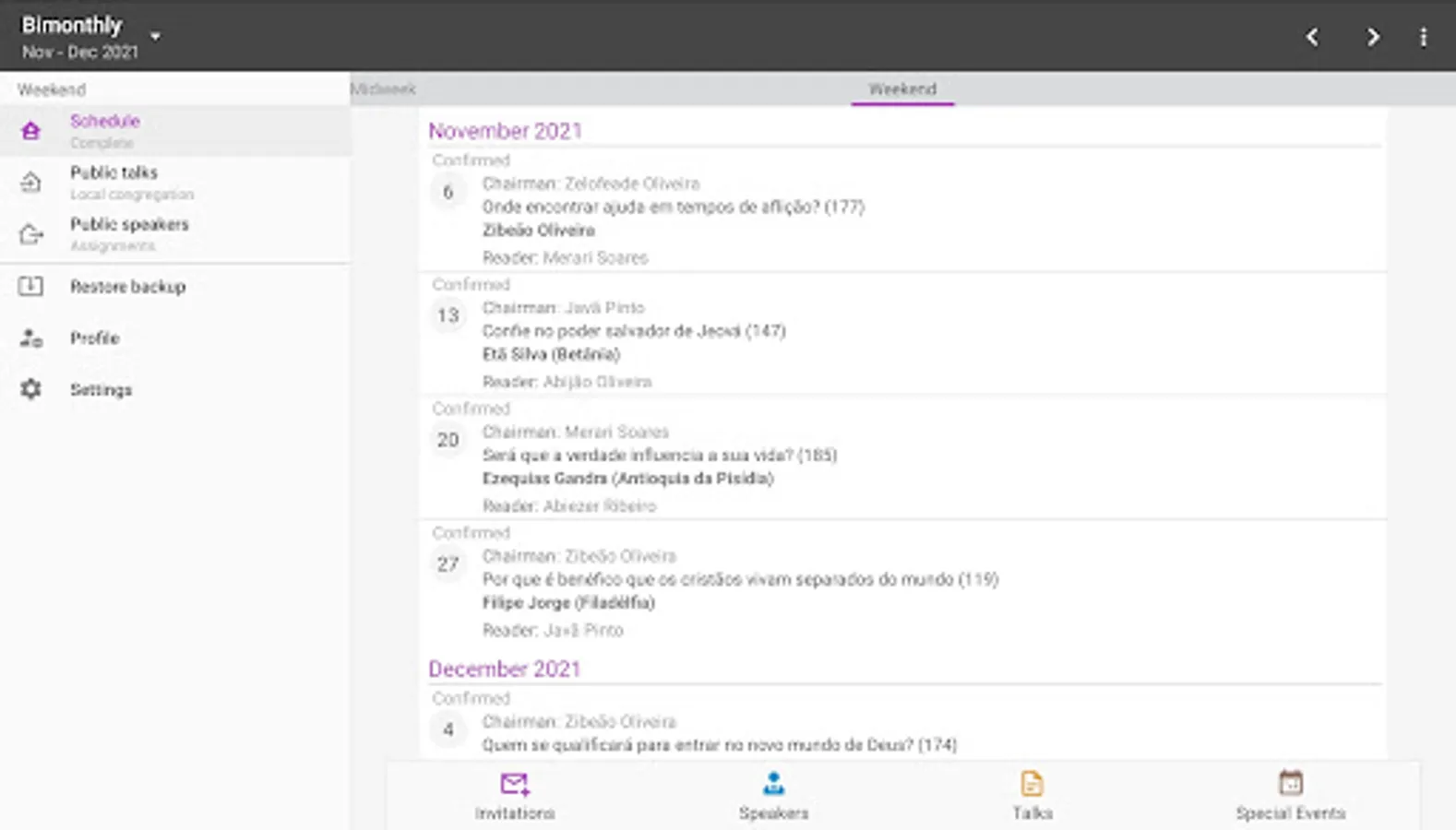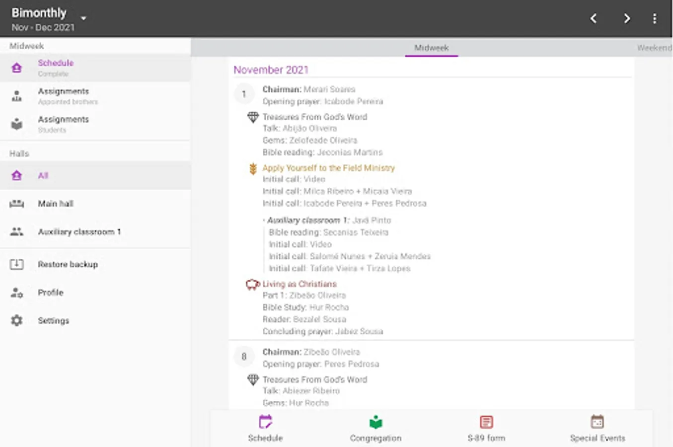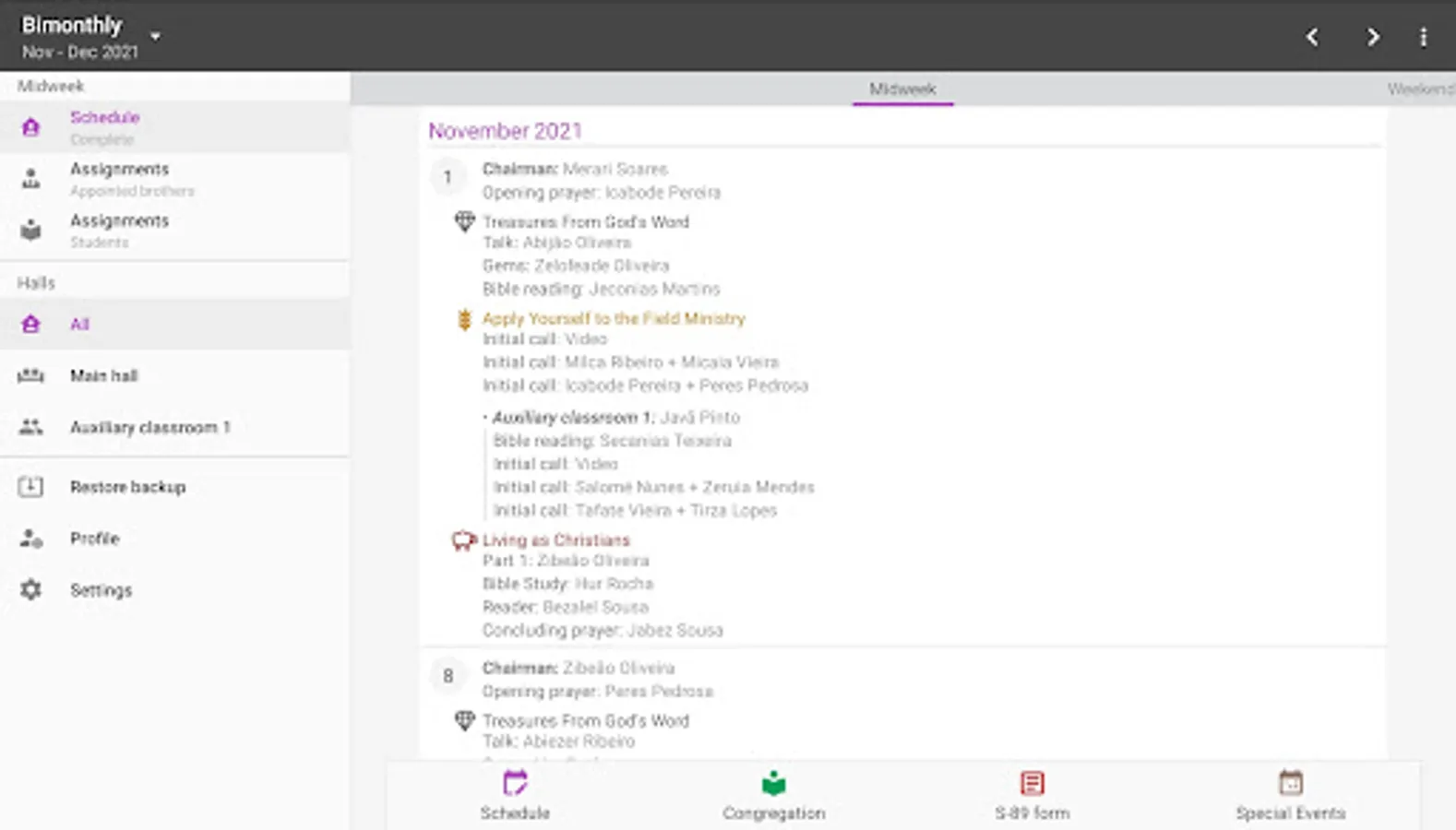 App to make the Jehovah’s Witnesses (JW) meetings schedules: