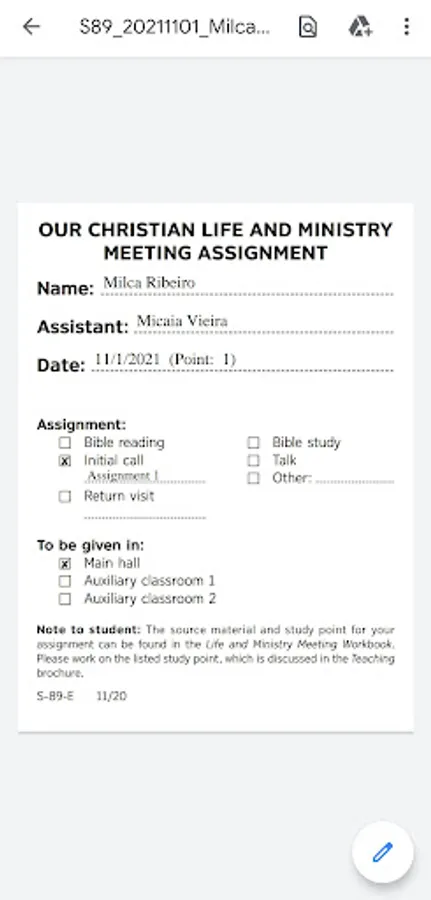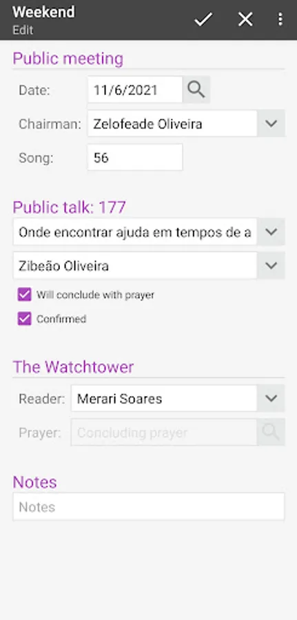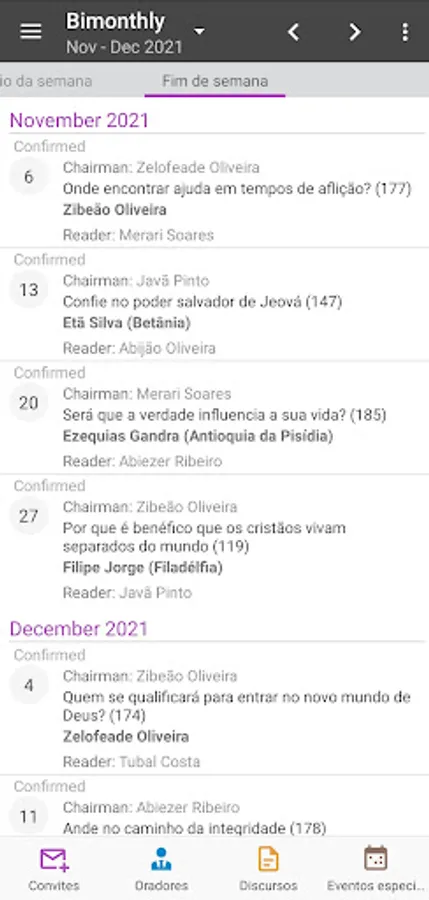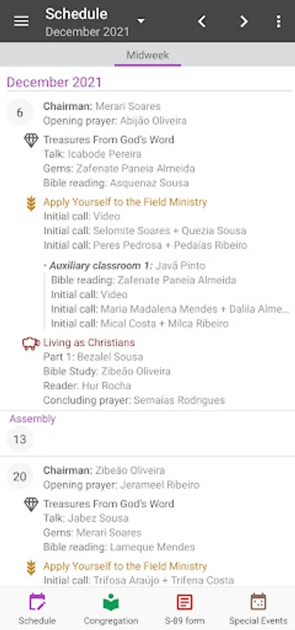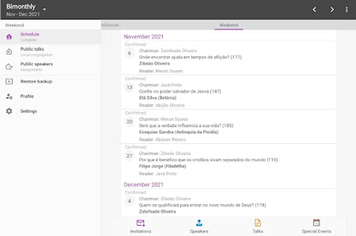 App to make the Jehovah’s Witnesses (JW) meetings schedules: