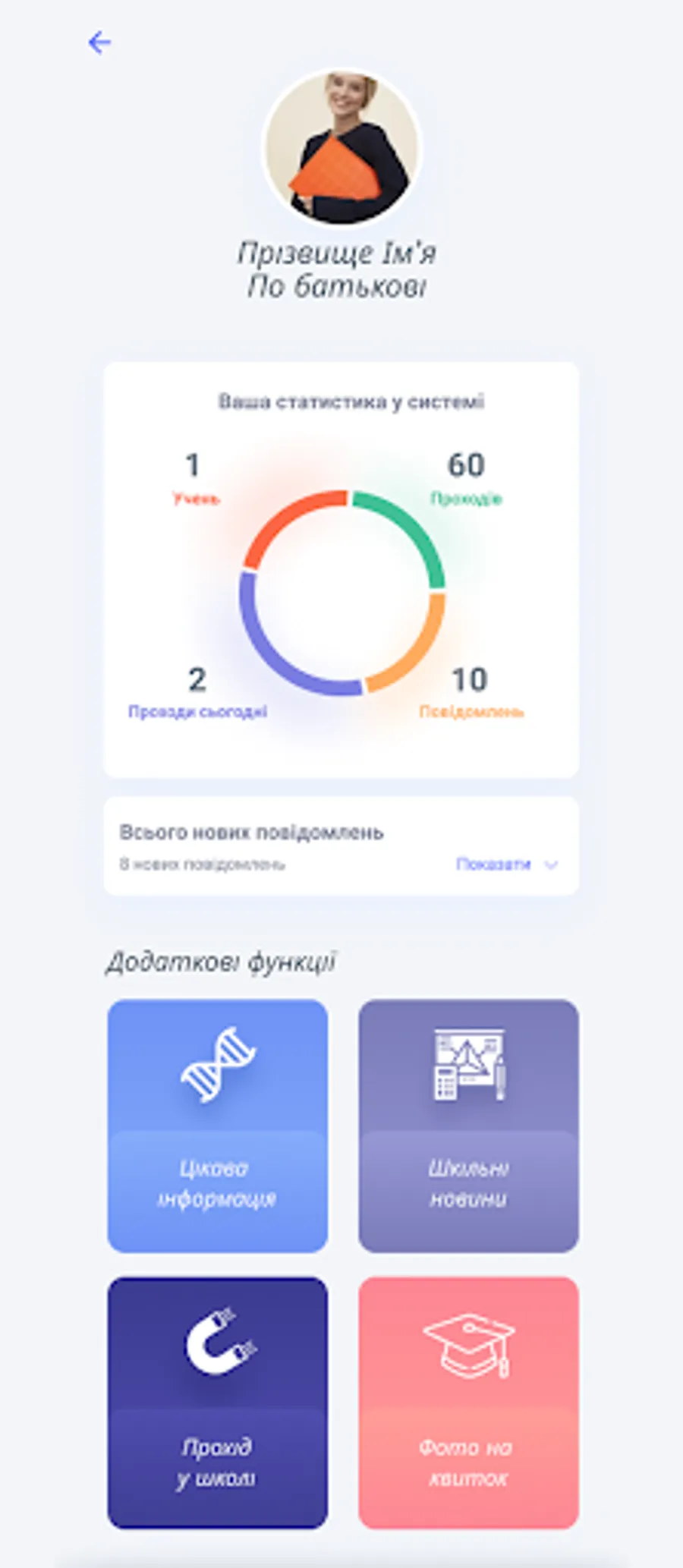 The application creates an opportunity for parents of students of public educational institutions of Dnipro to be informed in time about the student's passage through the turnstile system using PUSH messages in the application. Every day to have up-to-date information about events in the educational institution, the opportunity to ask questions and get an answer from the administration of the educational institution. Be timely and promptly informed about events in the city.