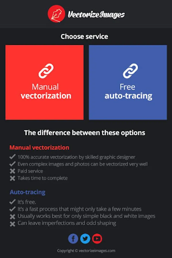 THIS IS A PAID SERVICE. IF YOU ARE INTERESTED IN FREE VECTORIZATION THEN USE OUR FREE VECTORIZATION TOOL - https://play.google.com/store/apps/details?id=com.zeeroapps.vectorization