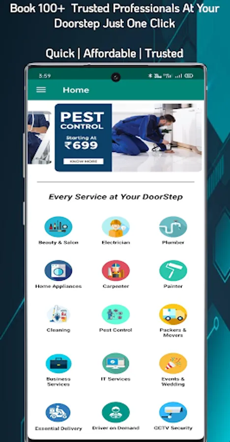 Yahi, Service99 lekar aaya hai apke liye ghar bethe electrician, plumber, pest control, salon, appliance technician ko bulane ka mauka vo bhi sirf ek click pe!