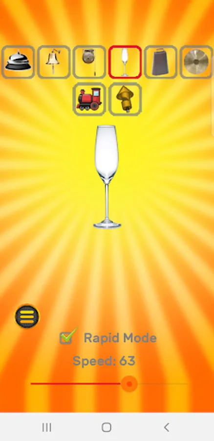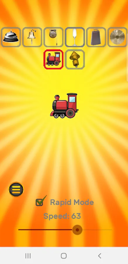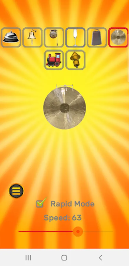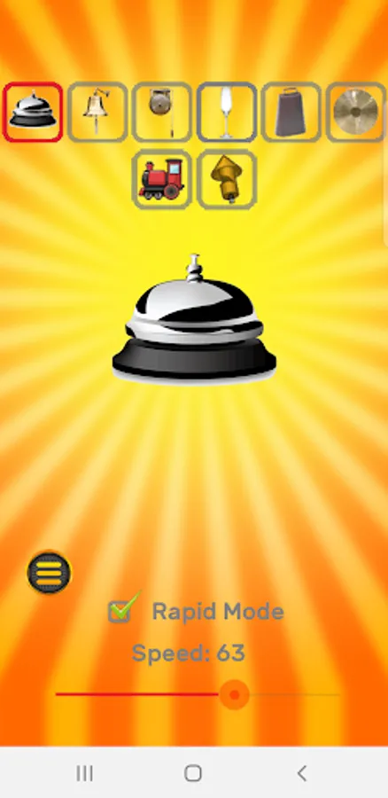 - "Rapid Mode" - allows the bell sound to repeat as long as the bell image is pressed. Use the Speed slider to control how fast the sounds repeat.