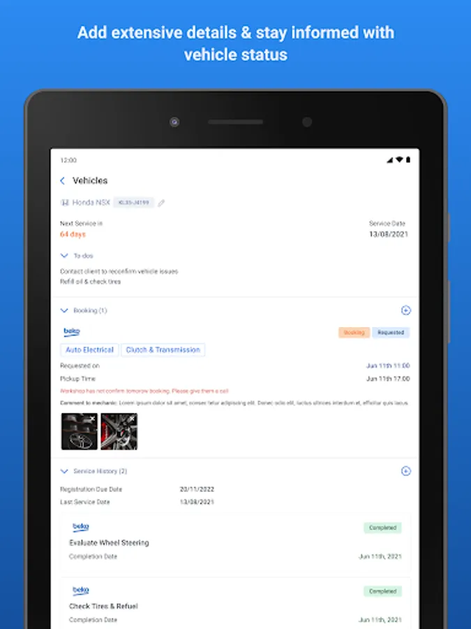 From the vehicle owners' perspective, Service Book helps them to keep track of their vehicle service history as well as maintenance needed. As well as make booking to their favourite service centre, and receiving constant job updates, booking and service reminders and general promotions.