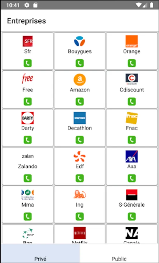 Customer service is an application that groups the customer service numbers of several companies (Sfr, Orange, Netflix, Bouygues, etc.) The application also offers you to find all the public numbers for police, samu, job center, etc. ..
