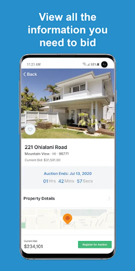 • Register and bid on properties in your area of interest from anywhere and on any device