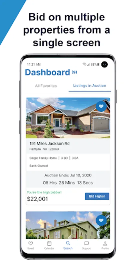 • Save your favorite listings and bid on them directly from your mobile dashboard