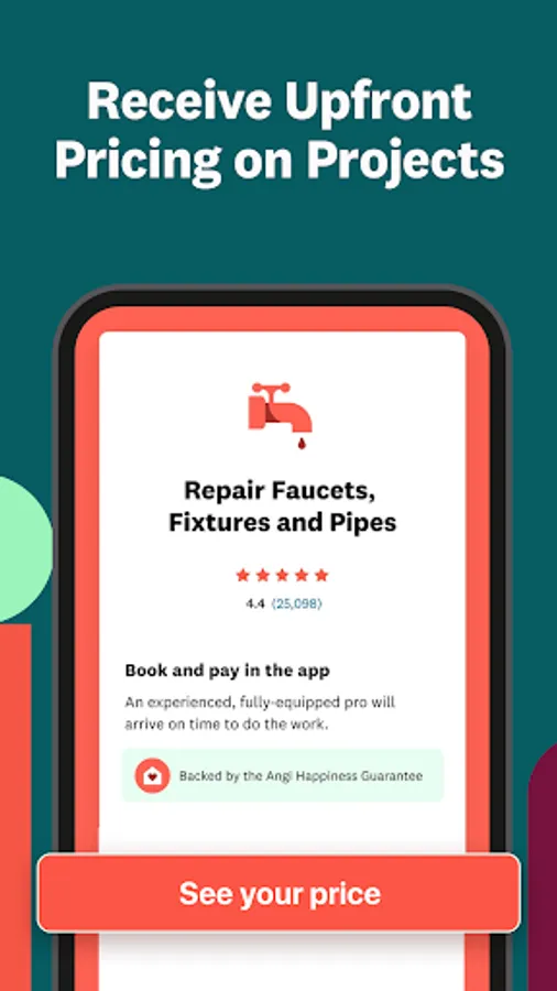Home projects are covered by our Happiness Guarantee when you book and pay through the Angi app. Your home service work will be covered up to the full purchase price, plus limited damage protection. See here for more details: https://www.angi.com/happiness-guarantee.htm.