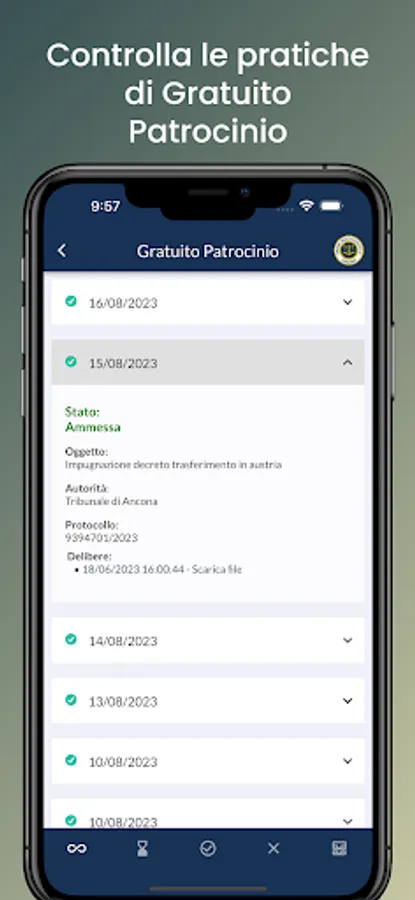 The app allows members of the Ancona Bar Association to:
