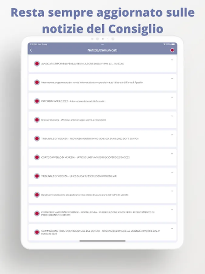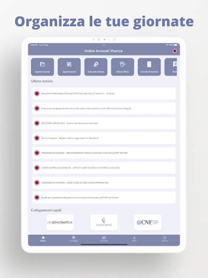 You can say goodbye to stress with the Vicenza Bar Association app! With a few clicks, your days will be perfectly organized.