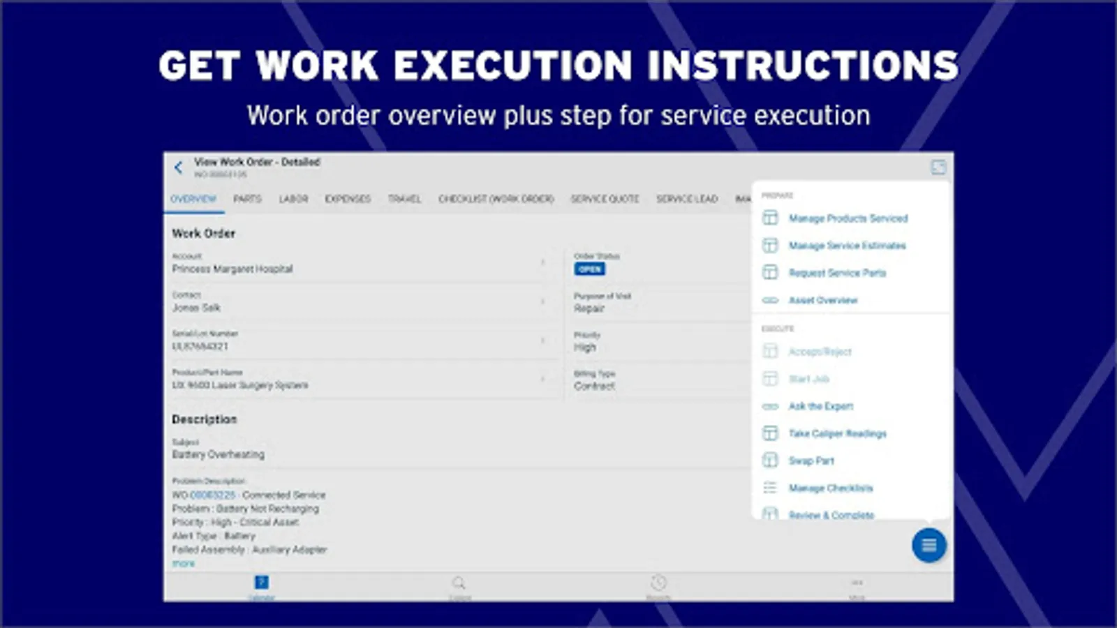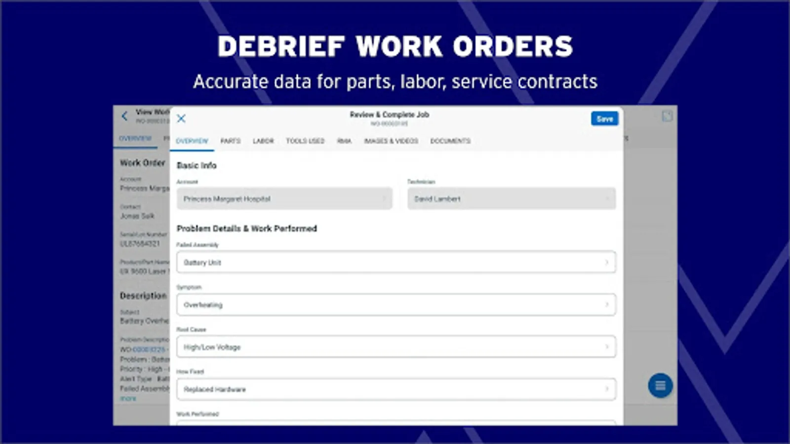 • Intuitive, field-ready UI design enabling technicians to get work done with minimal clicks and taps