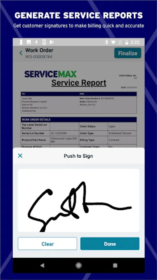 ServiceMax Go’s modern design is purpose-built for field workers with easy navigation, intuitive screens, and powerful offline capabilities—enabling complete visibility for maximum productivity.