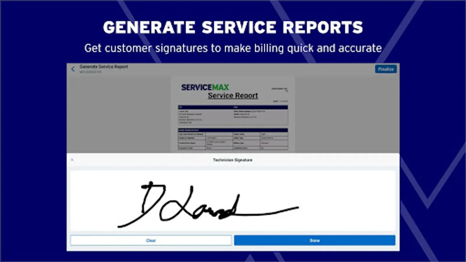 • Create service reports, invoices, etc. for customers to sign while on-site to expedite processing