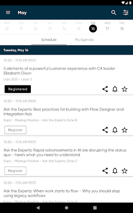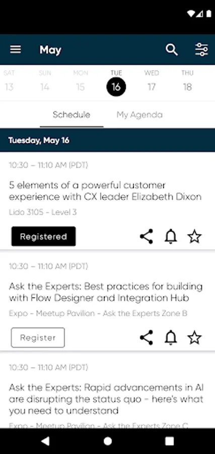 The ServiceNow Events app is the best way to stay connected to everything happening on-site at ServiceNow events.