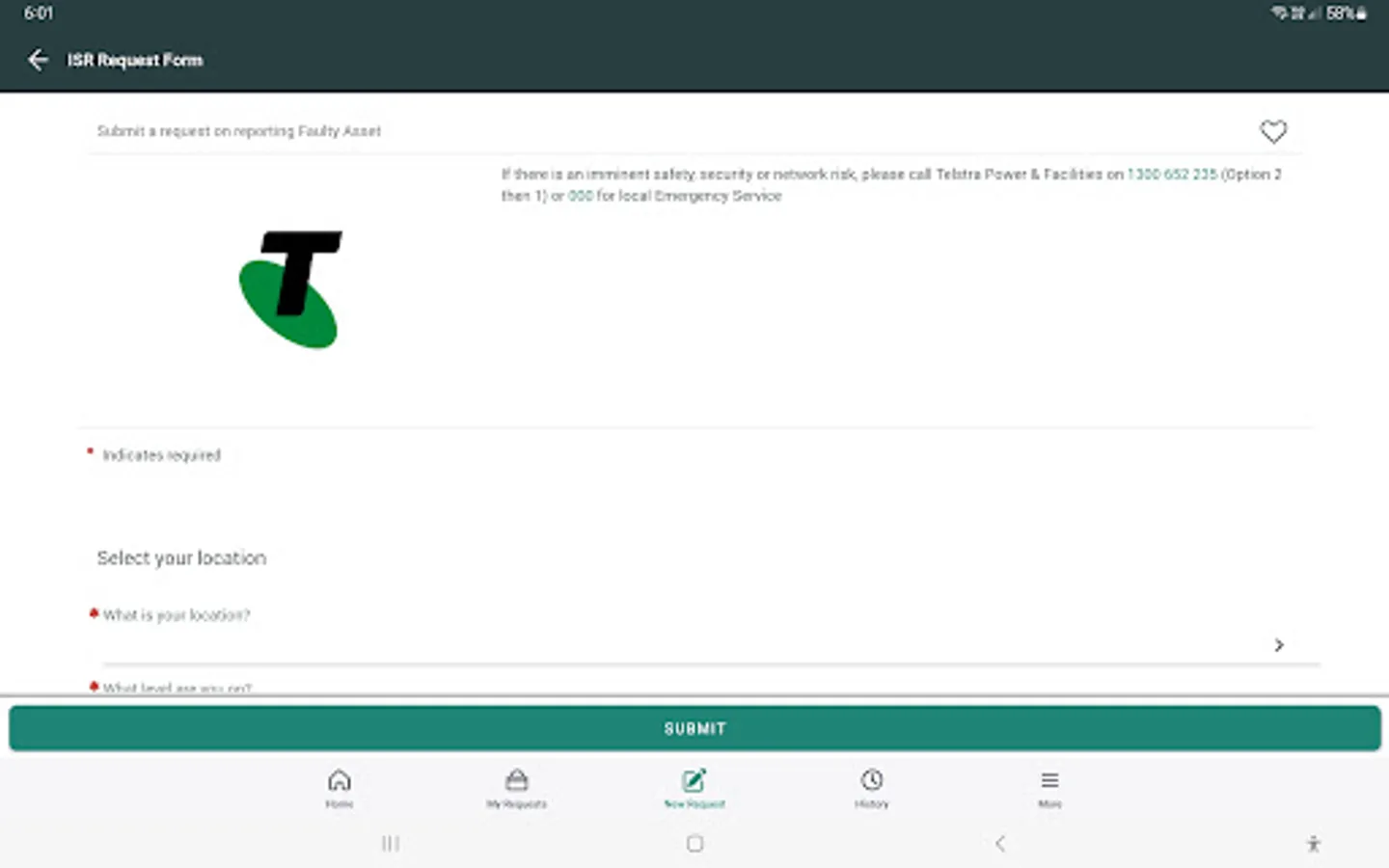 This mobile application is used to report Infrastructure Service Requests (ISR) for all Telstra Group Network Sites. Telstra employees can sign in using their Telstra ID, Telstra Contractors who do not have a Telstra ID and external users can reach out to their Sponsors in order to get an account created.