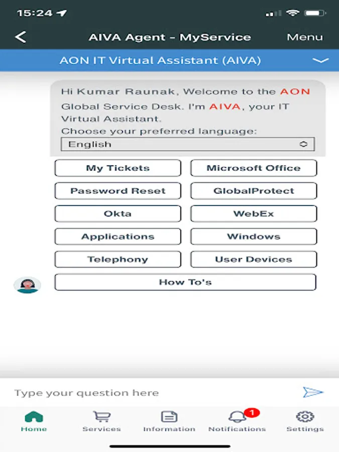 • Faster: Don’t spend hours on the phone - quickly report, monitor the status, and escalate issues/ requests through MyService or chat with AIVA (Aon’s IT Virtual Assistant) for instant support on technology issues.