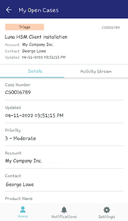 The mobile app provides basic functions that allow you to stay on top of case updates, track returns, and quickly open a new case when you cannot be connected to your computer for access to the full-featured web-based Customer Support Portal.