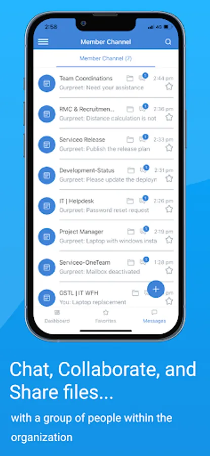 At Serviceo, we want to help you stay connected to your workplace no matter where you are. That's why we created Serviceo Chat, an instant messaging mobile app that helps you communicate, find information, and be part of your Serviceo workplace.