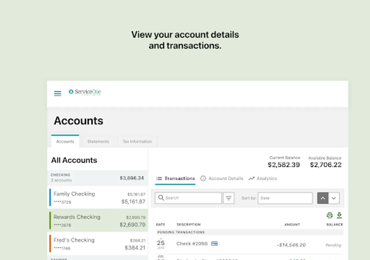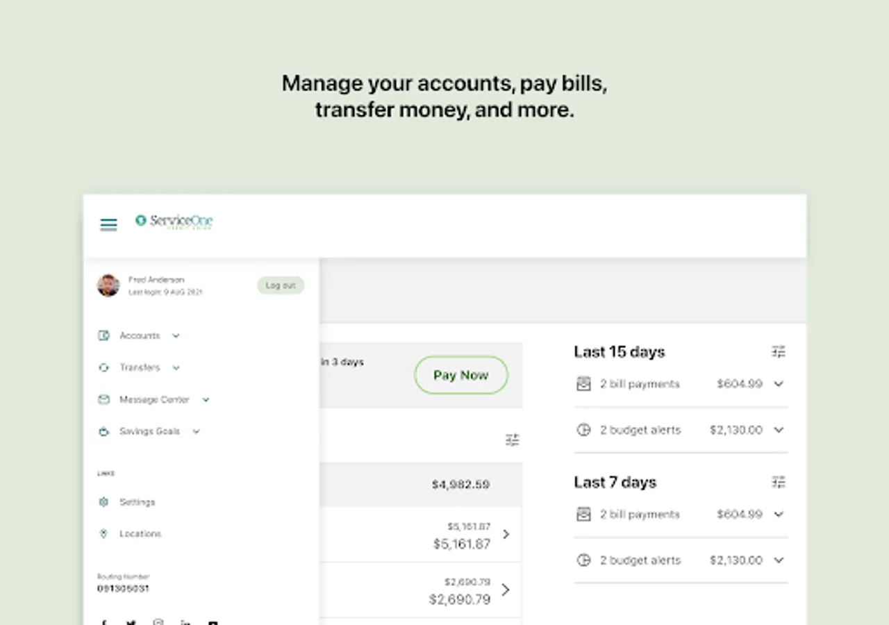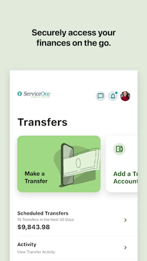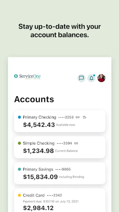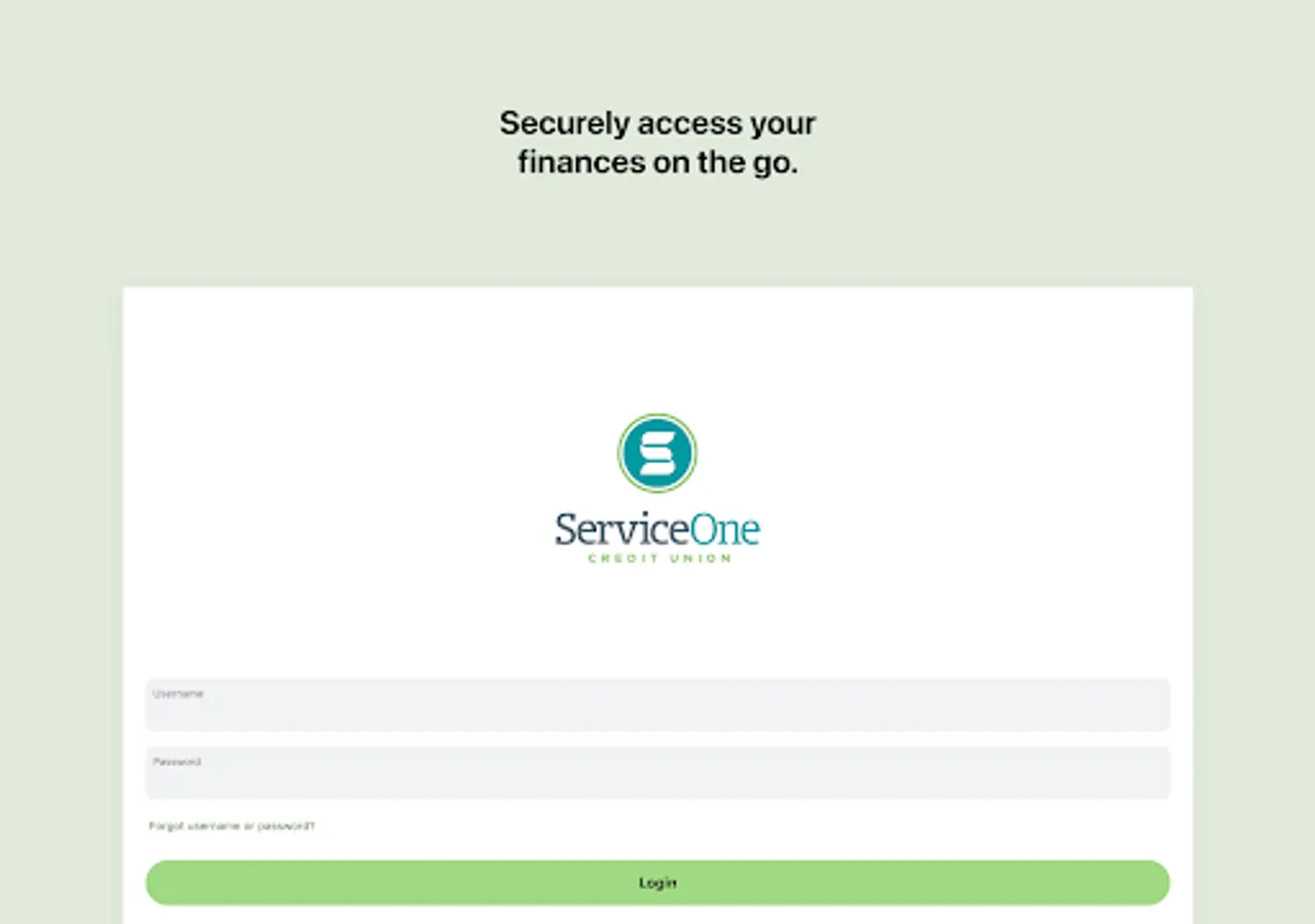 Banking with Service One has never been easier with our mobile app! Enjoy the great look and feel to easily complete your everyday transactions and view your account information. Make payments, transfer funds, view statements, and deposit checks with a few taps. Apply for loans, new accounts, become a member, or find your closest ATM or branch location.