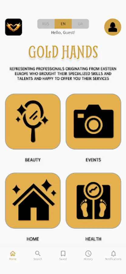 The Golden Hands app represents professionals from their Homeland who brought their knowledge and talents to the USA and are happy to offer you their services