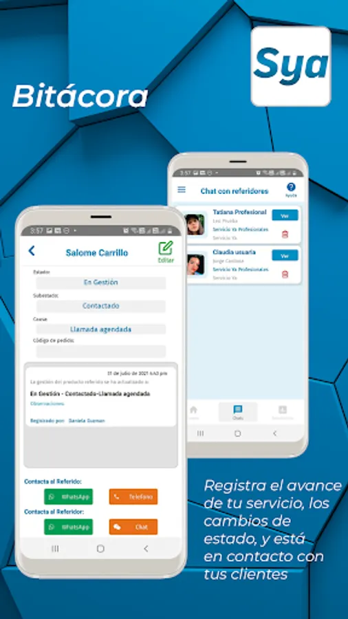 Through this application you will attend the referrals from Sya user and Sya professional.