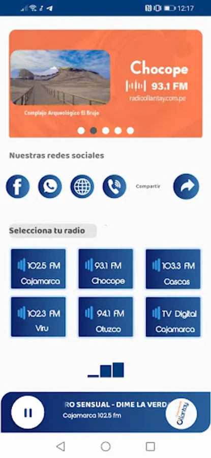Radio Ollantay is a group of radio stations located in the Cajamarca and La Libertad regions (Cajamarca, Ascope, Viru, Otuzco and Gran Chimú provinces) whose main mission is to bring information, culture and entertainment 365 days a year, constantly interacting with our listeners.