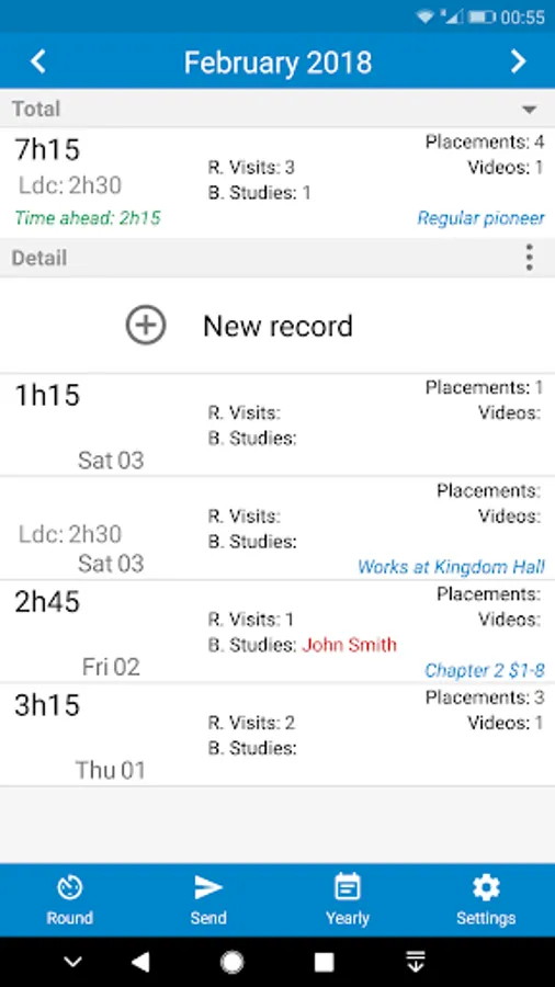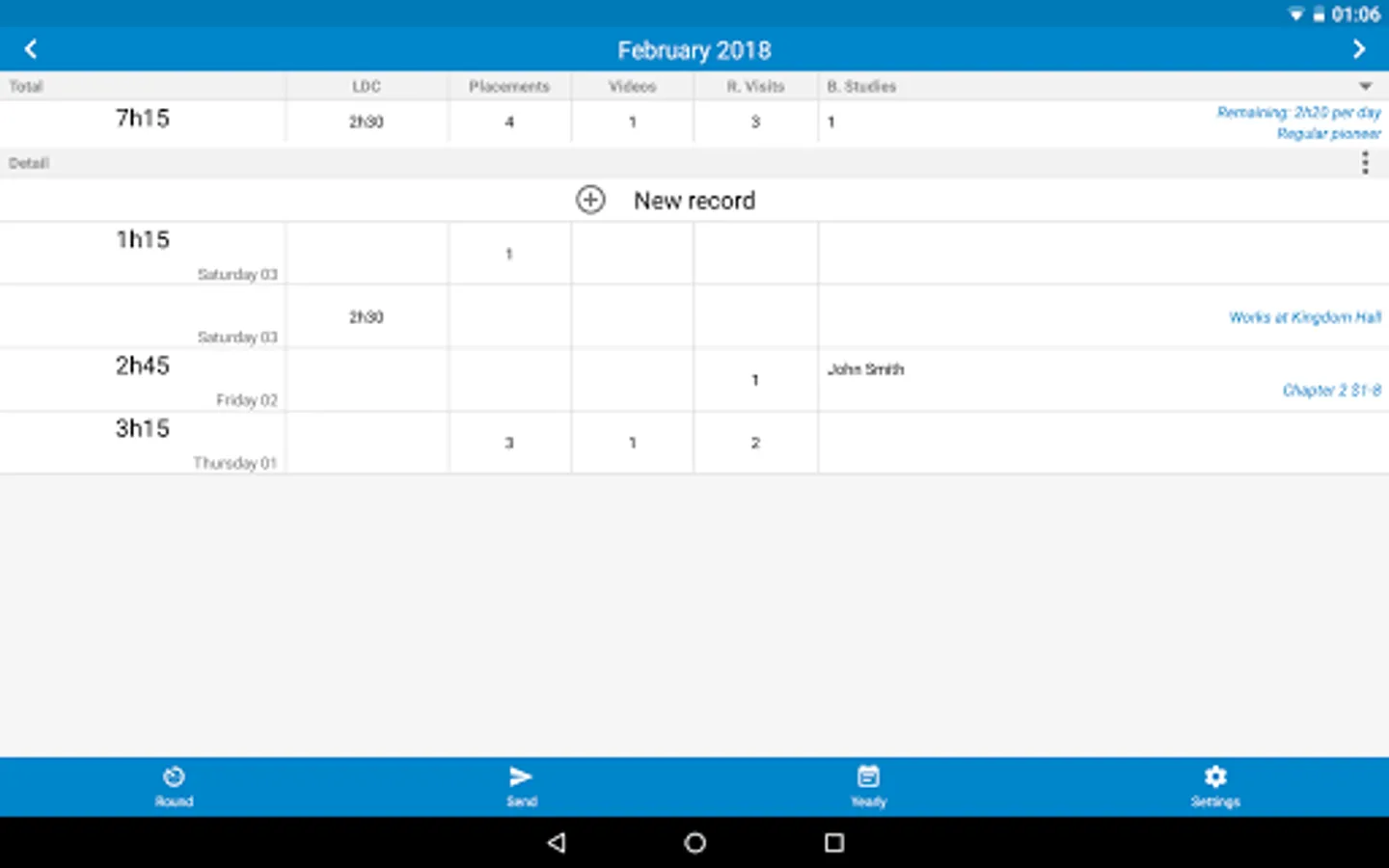 A fast and functional tool for Jehovah’s Witnesses, JW, to record and report the time spent in the field ministry.