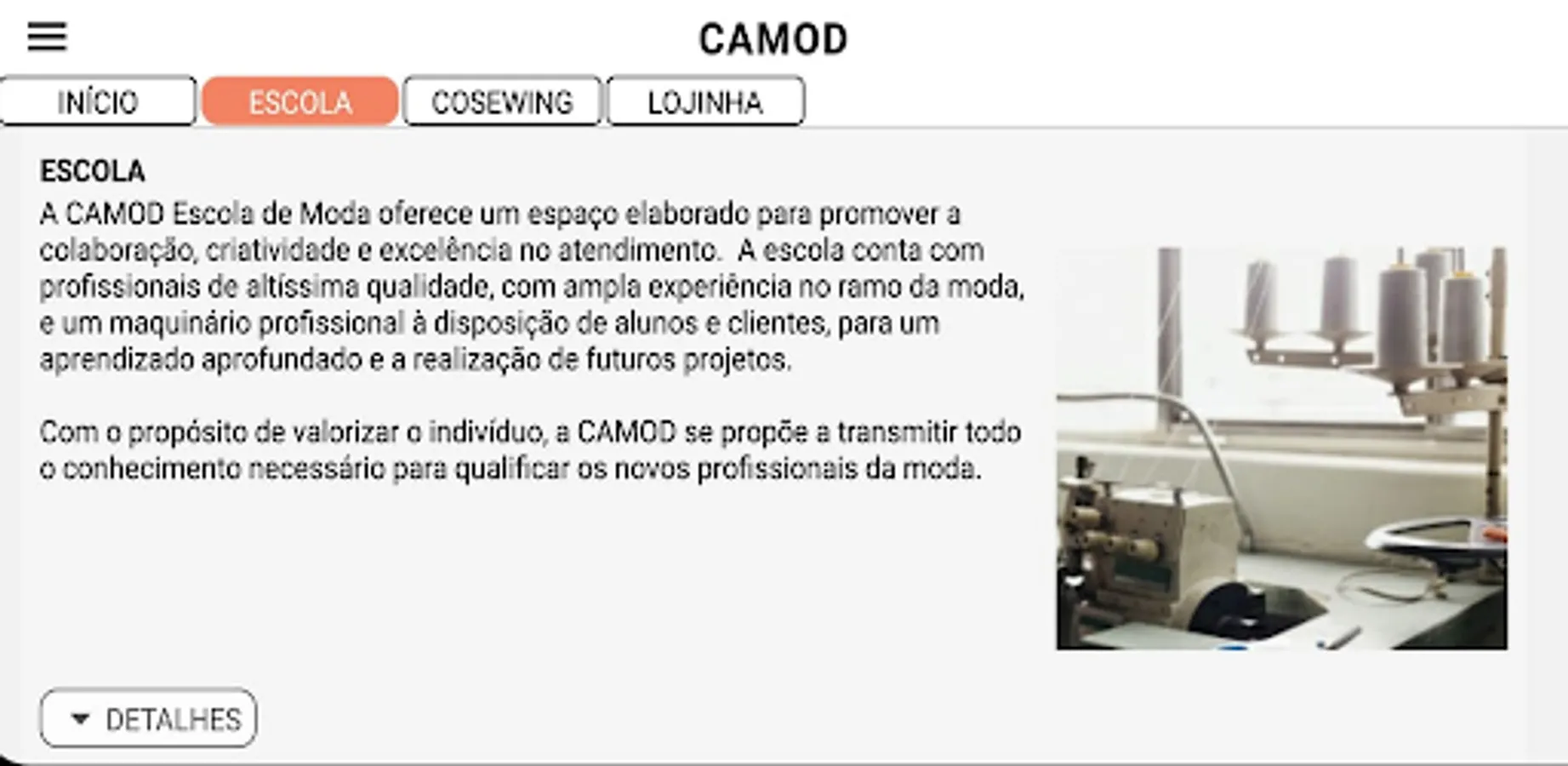 In a welcoming space, CAMOD promotes originality and innovation in the fashion area, offering workshops, workshops and courses, ranging from introductory levels to the most diverse specificities. Believing in the importance of encouraging local development, the Institute also offers the necessary consultancy for the creation and strengthening of independent brands. In order to promote communication between the individual and the world, CAMOD Escola de Moda believes in the power of renewal and is always attentive to new ideas.